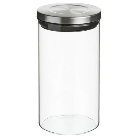 Informations Techniques : Dimensions : D. 9,7 x H. 18 cm Matière : Verre, Silicone & Acier Inoxydable Bocal Hermétique Poids : 0,31 kg Couleur : Argent & Transparent