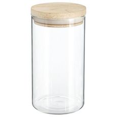 Informations Techniques : Dimensions : D. 10 x H. 18 cm Sans couvercle : D. 9,5 cm Matières : Verre & Bois (Hévéa) Spécificités : Pratique & Utile Bocal hermétique Couvercle en bois Contenance : 1 L Poids : 0,32 kg Couleur : Naturel & Transparent