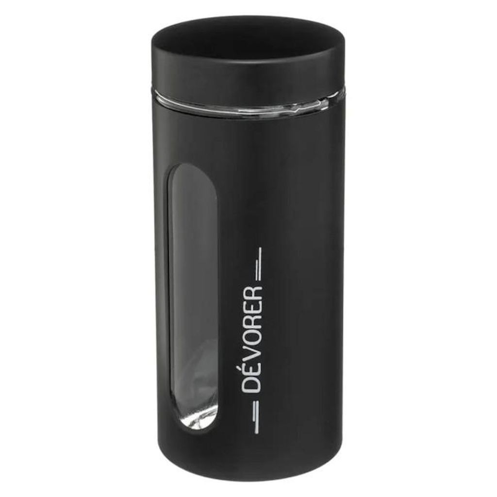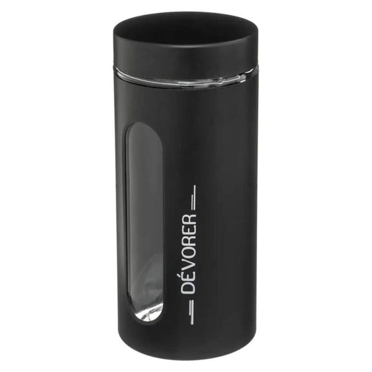 Informations Techniques : Dimensions : H. 22,4 x D. 10 cm Matière : Verre Spécificités : Tendance & Pratique Bocal de conservation Contenance : 1,25L Inscription dévorer Facile d'utilisation & d'entretien Poids : 0,83 kg Couleur : Noir