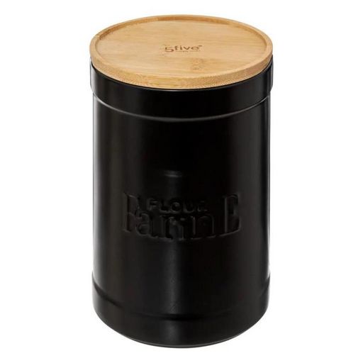 Informations Techniques : Dimensions : D. 12,2 x H. 19,5 cm Matière : Grès Spécificités : Pratique & Utile Boîte à farine Avec couvercle Forme ronde Poids : 1,02 kg Couleur : Noir