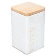 Informations Techniques : Dimensions : L. 10,5 x l. 10,5 x H. 18,5 cm Matières : Fer & Etain Spécificités : Pratique & Utile Boîte à Pâtes Style Scandinave Forme Carrée Contenance : 1 kg Facile d'entretien & d'utilisation Poids : 0,175 kg Couleur : Blanc
