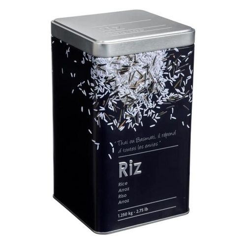 Informations Techniques : Dimensions : L. 10,8 x l. 10,8 x H. 18,4 cm Matière : Métal Spécificités : Contenance : 1,25 kg Poids : 0,18 kg Couleur : Noir
