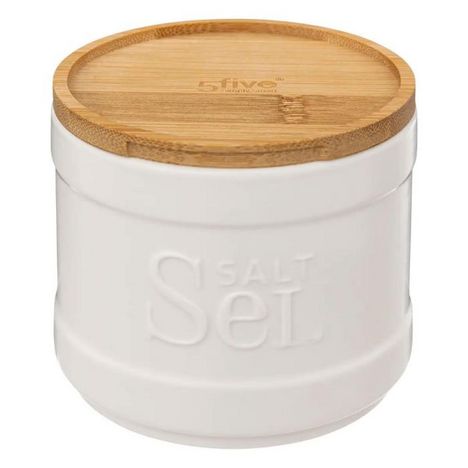 Informations Techniques : Dimensions : D. 10,7 x H. 10 cm Matières : Grès & Bambou Spécificités : Pratique & Utile Boîte à sel Avec couvercle Forme ronde Poids : 0,46 kg Couleur : Blanc