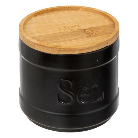 Informations Techniques : Dimensions : D. 10,7 x H. 10 cm Matières : Grès & Bambou Spécificités : Pratique & Utile Boîte à sel Avec couvercle Forme ronde Poids : 0,46 kg Couleur : Noir