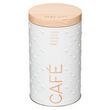 La durée de garantie est de 2 ans. Boite Descriptif BOITE CAFE RONDE RELIEF Coloris Blanc Type de produit Boîte alimentaire Nombre de pièces 1.0 Composition Fer-blanc Nombre de récipient 1.0 Caractéristiques spécifiques Capacité 2.17 Matière Métal Utilisation Con