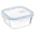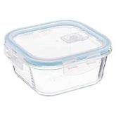 Informations Techniques : Dimensions : L. 16 x l. 16 x H. 7,4 cm Matières : Verre, Polypropylène & Silicone Spécificités : Capacité : 800 ml Hermétique grâce au système de clips Pratique & astucieux Compatible avec lave-vaisselle Poids : 0,517 kg Couleur : Bleu
