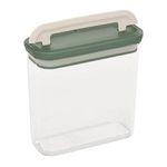 Informations Techniques : Dimensions : L. 17,6 x l. 8,4 x H. 18 cm Matières : PET & ABS Spécificités : Empilable & Hermétique Boîte de conservation rectangulaire Poignée ergonomique Capacité : 1,3 L Poids : 0,5 kg Couleur : Transparent