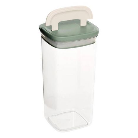 Informations Techniques : Dimensions : L. 11,9 x l. 11,9 x H. 24,4 cm Matières : PET & ABS Spécificités : Empilable & Hermétique Boîte de conservation carrée Poignée ergonomique Capacité : 1,8 L Poids : 0,55 kg Couleur : Transparent