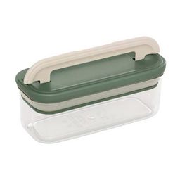 Informations Techniques : Dimensions : L. 18 x l. 7,3 x H. 8,4 cm Matières : PET & ABS Spécificités : Empilable & Hermétique Boîte de conservation rectangulaire Poignée ergonomique Capacité : 400 ml Poids : 0,32 kg Couleur : Transparent