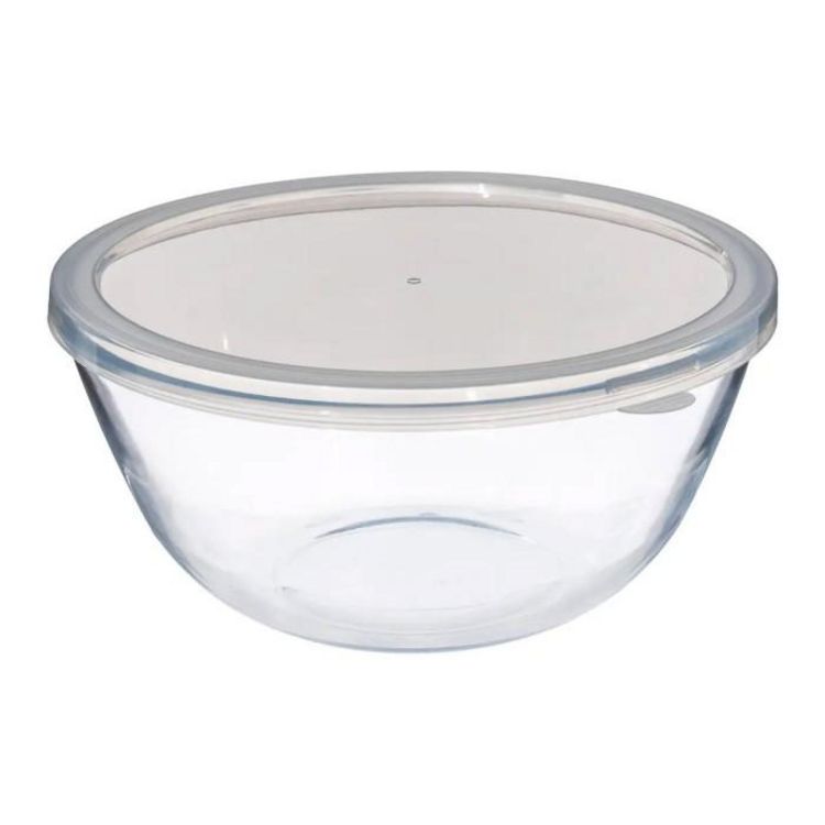 Informations Techniques : Dimensions : D. 27 x H. 12,6 cm Matières : Verre & Polypropylène Spécificités : Pratique & Utile Boîte de conservation Avec couvercle Forme ronde Capacité : 4,4 L Poids : 1,59 kg Couleur : Transparent