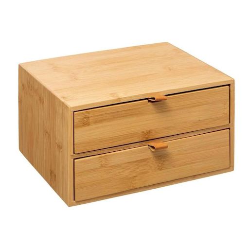 Boîte Déco 2 Tiroirs Bambou 25cm Naturel