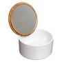Informations Techniques : Dimensions : D. 13,5 x H. 7 cm Matière : Bambou Spécificités : Pratique & Astucieux Boîte avec miroir 3 compatiments Miroir intégré Poids : 0,27 kg Couleur : Blanc