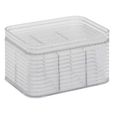 Informations Techniques : Dimensions : L. 15,3 x l. 11,3 x H. 9 cm Matière : PET Spécificités : Empilable & Utile Boîte de rangement organiseur Avec 6 compartiments amovibles Poids : 0,31 kg Couleur : Transparent