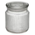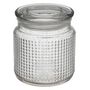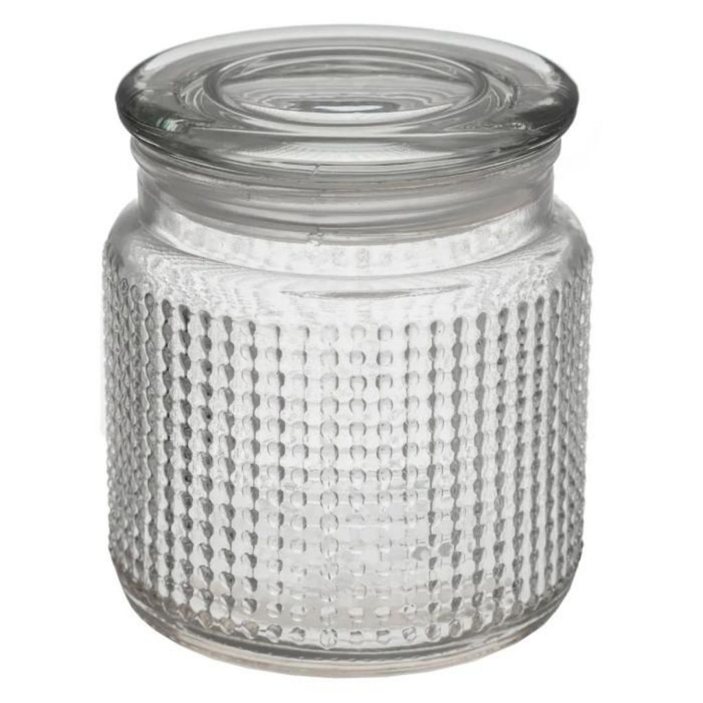 Informations Techniques : Dimensions : D. 10 x H. 11 cm Matière : Verre Spécificités : Élégante & Utile Bonbonnière cylindrique Design motif relief Compatible lave-vaisselle Capacité : 0,45 L Poids : 0,43 kg Couleur : Transparent