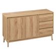Le buffet Liam allie style et fonctionnalité pour embellir votre intérieur. Conçu en bois, ce buffet arbore une couleur chêne naturel chaleureuse qui s'intègre parfaitement dans tout type de décoration. Avec ses 2 portes et 3 tiroirs, il offre un espace de rangement généreux et organisé pour vos eff