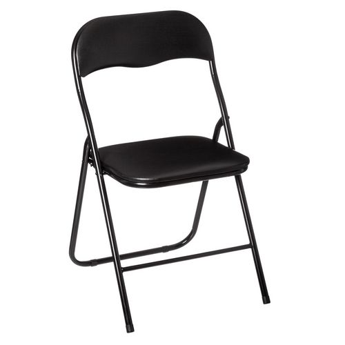 Pratique et colorée, cette chaise saura se faire une place de choix chez vous.FICHE TECHNIQUE- Modèle pliant- Couleur : Noir- Structure en Acier et PVC- Assise en PolyuréthaneCARACTERISTIQUES TECHNIQUES- Dimensions : L. 44 x P. 48 x H. 79 cm- Dimensions de lassise : L. 39 x P. 39 cm - Hauteur d'assi