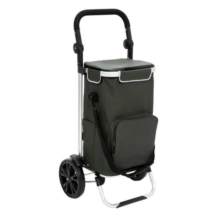 Informations Techniques : Dimensions : L. 45,5 x l. 36,5 x H. 97,5 cm Roues : D. 21 cm Matières : Aluminium & Polyester Spécificités : Pratique & Robuste Chariot de courses Sac isotherme Poignée hauteur réglable Grandes roues robustes Sac imperméable et amovible Sangle réglable Structure en alumin