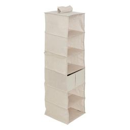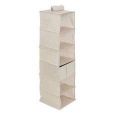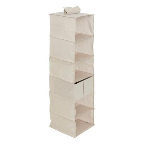Informations Techniques : Dimensions : L. 30 x l. 30 x H. 127 cm Matière : Carton Spécificités : Pliable & Utile Colonne de rangement 6 cases et 1 panier tiroir 2 poches latérales À suspendre Poids : 1,2 kg Couleur : Beige