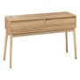 Apportez une touche de sophistication à votre intérieur avec la console Liam. Fabriquée en bois, cette console est à la fois élégante et pratique. Elle est équipée de 2 tiroirs spacieux, parfaits pour ranger vos petits objets du quotidien tout en gardant un espace épuré. Grâce à son système de fermeture silencieuse, cette console assure une utilisation confortable et sans bruit.