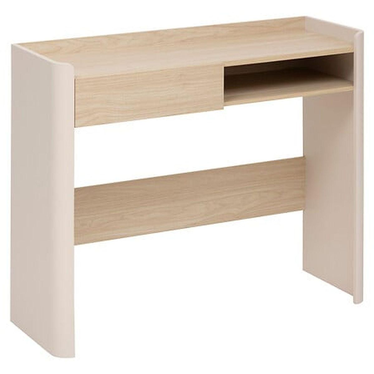 La console ROUNDY séduit par son effet bois doux et son design épuré. Dotée d'un tiroir discret et d'une niche ouverte, elle est idéale comme console d'entrée, petit bureau d'appoint ou meuble décoratif dans un intérieur contemporain.