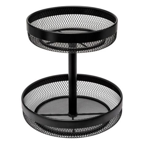 Informations Techniques : Dimensions : D. 30 x H. 31 cm Matière : Acier Spécificités : Pratique & Utile Corbeille à fruits Avec 2 niveaux Design ajouré À monter soi-même Poids : 1,13 kg Couleur : Noir
