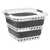 Corbeille à Linge Rétractable 40L Blanc & Gris