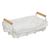 Informations Techniques : Dimensions : L. 27,6 x l. 15,9 x H. 10,9 cm Matières : Acier & Bois (Pin) Spécificités : Pratique & Utile Corbeille à pain rectangulaire Avec poignées latérales en bois Poids : 0,48 kg Couleur : Blanc