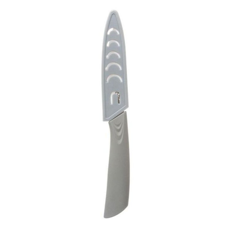 Informations Techniques : Dimensions : L. 2 x l. 20,2 x l. 1,5 cm Lame : L. 10 cm Étui Lame : L. 11,2 x l. 2 x H. 1,5 cm Matières : ABS, TPR & Zirconia Spécificités : Pratique & Astucieux Couteau d'Office Lame en Céramique Contact Alimentaire Protection incluse Poids : 0,045 Kg Couleur : Gris & Blan