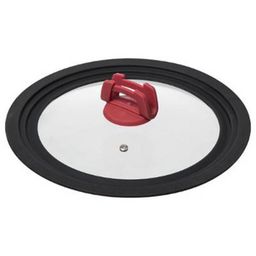 Informations Techniques : Dimensions : D. 31,6 x H. 9 cm Matières : Verre & Silicone Spécificités : Pratique & Tendance Adapté pour 3 diamètres : 26 cm, 28 cm et 30 cm Avec Repose Cuillère Cuillère visible sur la photo n'est pas incluse. (vendue séparément) Poids : 0,720 kg Couleur : Gris