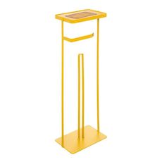 Informations Techniques : Dimensions : L. 18 x l. 12 x H. 59,2 cm Matière : Métal Spécificités : Pratique & Utile Dérouleur WC 3 en 1 Réserve de Rouleaux de Papier de Toilette (capacité de 4 environ) Support de Téléphone Portable inclus Poids : 1,2 kg Couleur : Moutarde