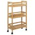Informations Techniques : Dimensions : L. 45,3 x l. 22 x H. 80 cm Matière : Bambou Spécificités : Pratique & Utile Desserte de Cuisine 3 Niveaux Sur Roulettes Format Compact Idéale pour les Petits Espaces & les Recoins Renforts sur les Étagères afin que les produits ne tombent pas Poids Maximal Supp