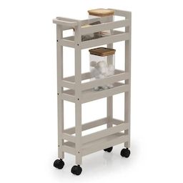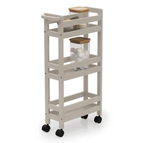 Informations Techniques : Dimensions : L. 40 x l. 15 x H. 75 cm Matière : MDF Spécificités : Pratique & Utile Desserte de Cuisine 3 Niveaux Avec Roulettes Poids Maximal Supporté : 2 kg (par étagère) A monter soi-même Poids : 3 kg Couleur : Naturel