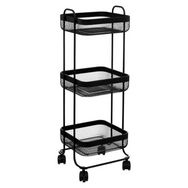 Informations Techniques : Dimensions : L. 26 x l. 24,5 x H. 76 cm Matière : Fer Spécificités : Tendance & Moderne Desserte de Cuisine 3 Niveaux Sur Roulettes Poids Maximal Supporté : 5 kg (par étagère) A monter soi-même Poids : 1,955 kg Couleur : Noir