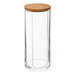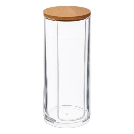 Informations Techniques : Dimensions : D. 7,5 x H. 17,6 cm Matières : Polystyrène & Bambou Spécificités : Pratique & Tendance Couvercle en bambou Grande ouverture latérale Poids : 0,170 kg Couleur : Transparent & Naturel