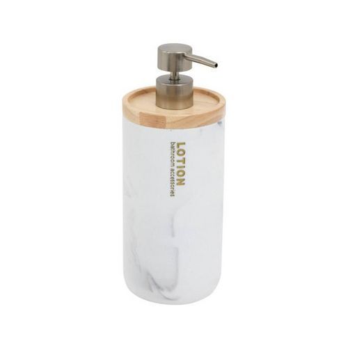 Informations Techniques : Dimensions : D. 9 x H. 22,7 cm Matière : Polyrésine Spécificités : Pratique & Tendance Distributeur de savon déco Imprimé marbre Inscription Lotion Pompe argentée Couvercle effet bois Contenance : 842 ml Poids : 0,4 kg Couleur : Blanc