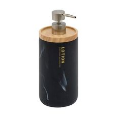 Informations Techniques : Dimensions : D. 9 x H. 22,7 cm Matière : Polyrésine Spécificités : Pratique & Tendance Distributeur de savon déco Imprimé marbre Inscription Lotion Pompe argentée Couvercle effet bois Contenance : 842 ml Poids : 0,4 kg Couleur : Noir