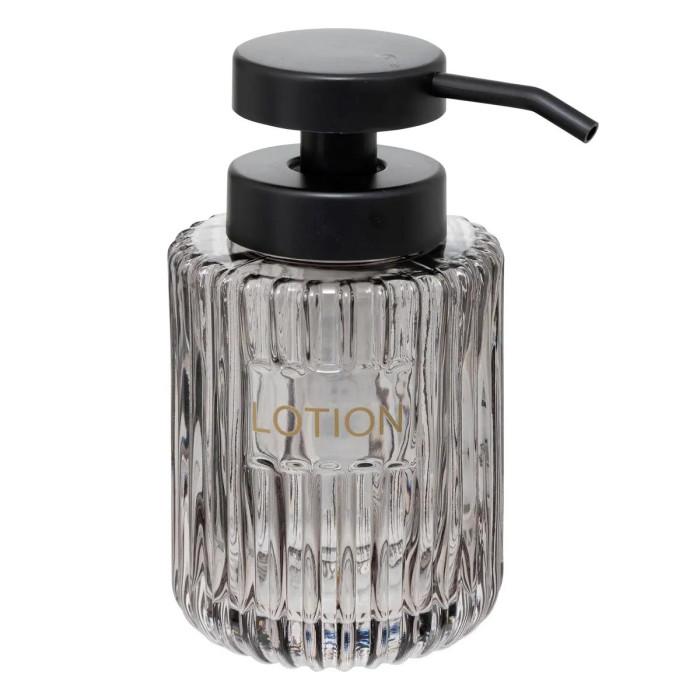 Informations Techniques : Dimensions : D. 8 x H. 14,5 cm Matière : Verre Spécificités : Élégant & Utile Distributeur de savon Design texturé Inscription Lotion Capacité : 0,25 L Poids : 0,36 kg Couleur : Gris