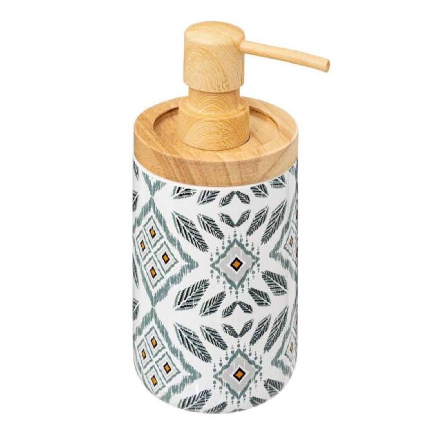 Informations Techniques : Dimensions : D. 7,7 x H. 18,5 cm Matière : Dolomite Spécificités : Déco & Utile Distributeur de savon rond Imprimé ethnique Poids : 0,29 kg Couleur : Multicolore