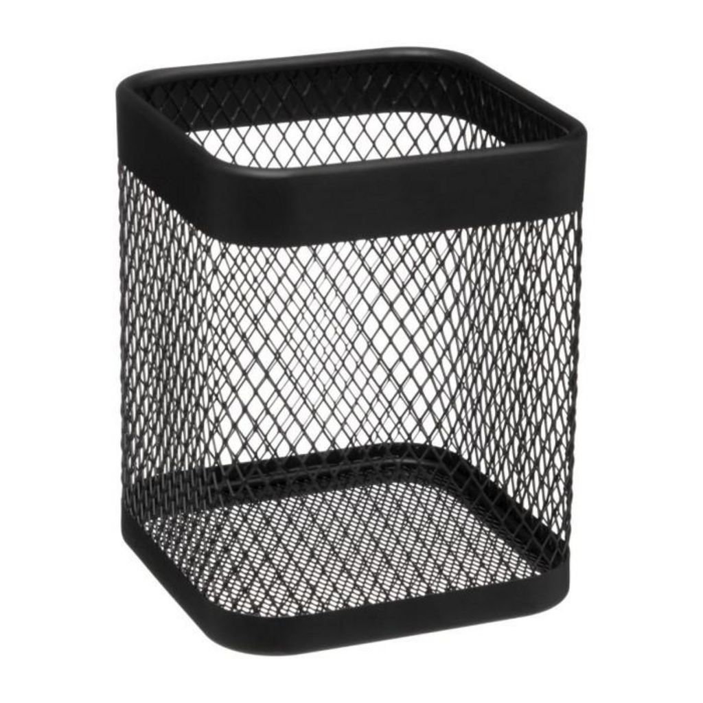 Informations Techniques : Dimensions : L. 13 x l. 13 x H. 16,5 cm Matière : Acier Spécificités : Pratique & Utile Égouttoir à couverts Design maille fine Poids : 0,28 kg Couleur : Noir