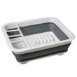 Informations Techniques : Dimensions : L. 36,5 x l. 31,5 x H. 13 cm Fermé : L. 36,5 x l. 31,5 x H. 5,5 cm Matière : Silicone Spécificités : Design & Original Égouttoir Rétractable Peut contenir 5 Assiettes, 4 Verres à eau & 1 Pot Range-Couverts Poids : 0,56 kg Couleur : Gris