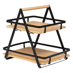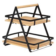 Étagère 2 niveaux avec anse en bambou et métal ORDERA