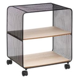 Informations Techniques : Dimensions : L. 43 x l. 28 x H. 51 cm Matières : Métal & MDF Spécificités : Design & Pratique 2 Niveaux Etagère sur roulettes Facile d'entretien et d'utilisation Poids : 4,18 kg Couleur : Noir & Naturel