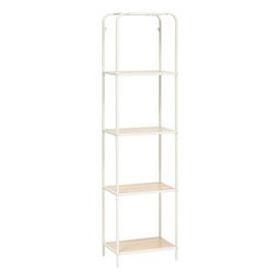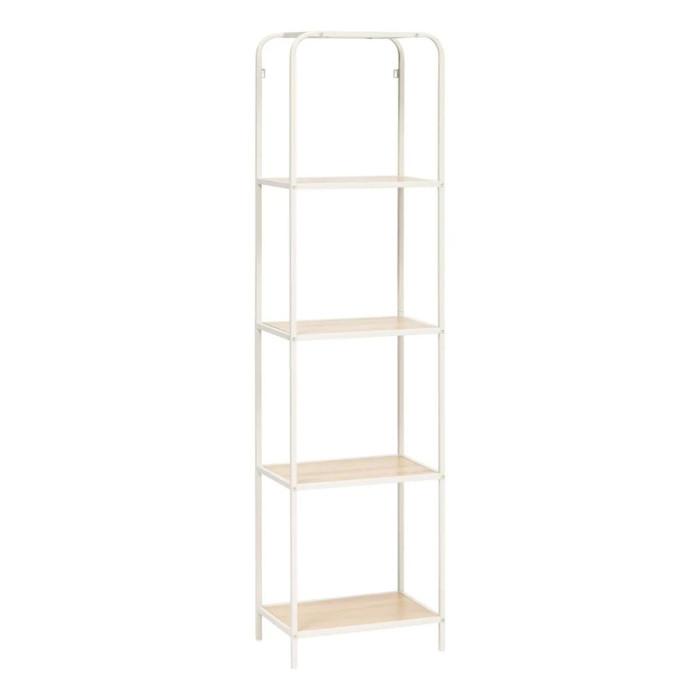 Informations Techniques : Dimensions : L. 45 x l. 30 x H. 169,5 cm Matières : MDF & Acier Spécificités : Tendance & Pratique Étagère sur pied Avec 4 niveaux Patins de protection inclus Poids : 8,1 kg Couleur : Naturel & Beige