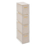 Informations Techniques : Dimensions : L. 25 x l. 15 x H. 70 cm Matières : Métal & Papier Spécificités : Pratique & Utile Étagère fine Avec 4 paniers de rangement Forme rectangulaire Poids : 2,09 kg Couleur : Blanc