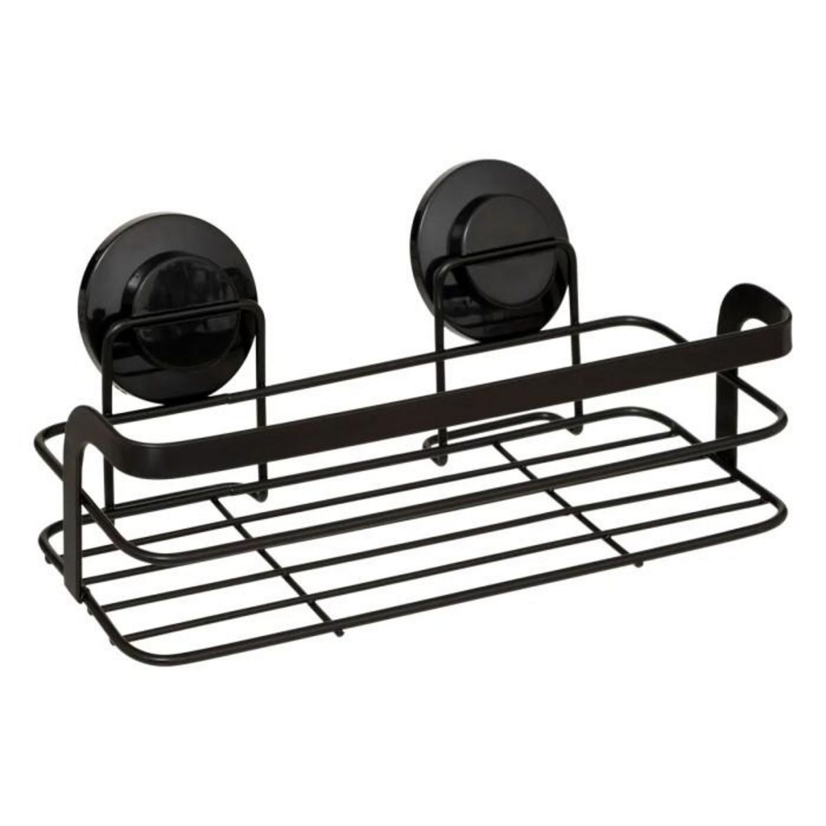 Informations Techniques : Dimensions : L. 25,5 x l. 12 x H. 11 cm Matière : Acier Spécificités : Pratique & Utile Étagère de douche à ventouses Poids max supporté : 3 kg Poids : 0,33 kg Couleur : Noir