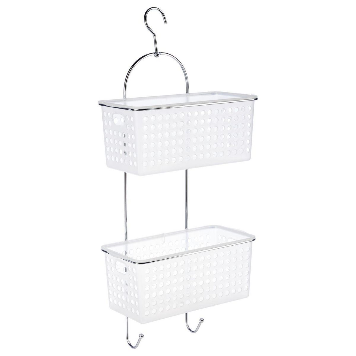 - Dotée de 2 paniers pour avoir tous vos produits le plus proche de vous et de deux crochets pour accrocher vos fleurs de bain.