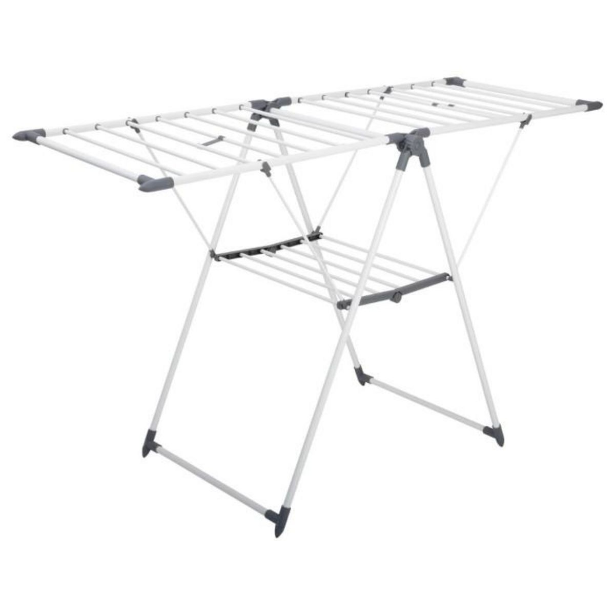 Informations Techniques : Dimensions : L. 106 x l. 61,5 cm Ouvert : L. 160 x l. 61 x H. 98,5 cm Matières : Métal & Polypropylène Spécificités : Pratique & Utile Étendoir à Linge Pliable Capacité : 13 mètres Poids : 3,67 kg Couleur : Gris