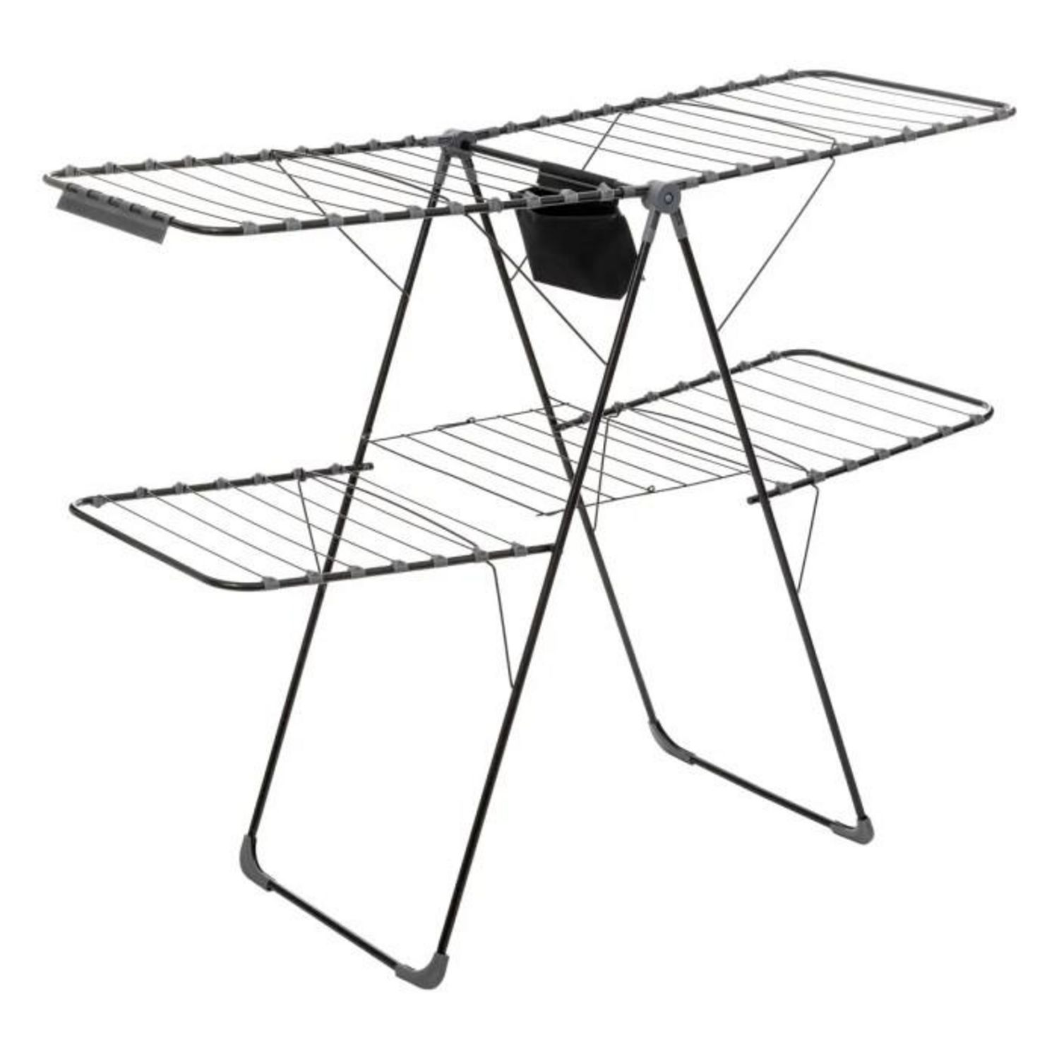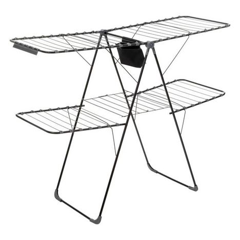 Informations Techniques : Dimensions : L. 160 x l. 60 x H. 125 cm Matière : Métal & Polypropylène Spécificités : Pratique & Utile Étendoir pliable Peut contenir jusqu'à 3 machine Capacité : 31 mètres Poids : 4,9 kg Couleur : Noir
