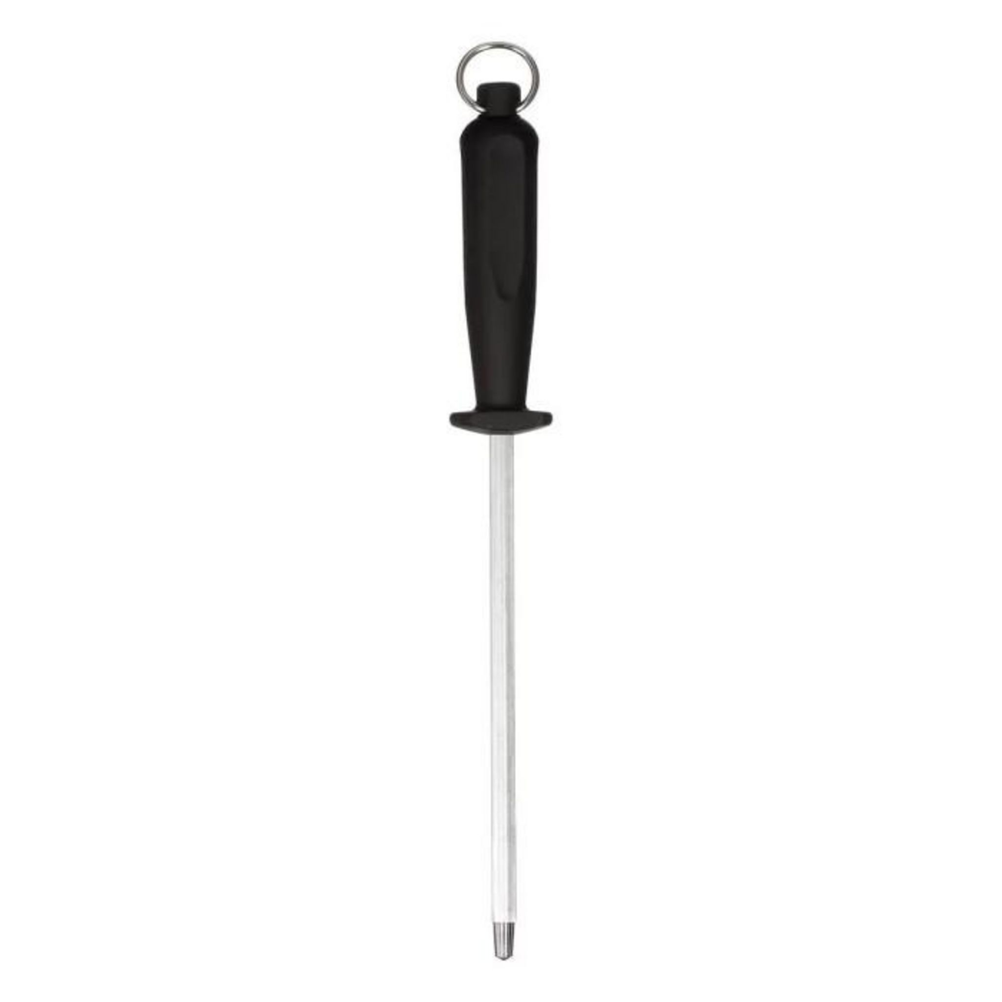 Informations Techniques : Dimensions : L. 31 cm Matières : Acier & Polypropylène Spécificités : Fusil à aiguiser pour couteaux Equipé d'un anneau Poids : 0,156 kg Couleur : Noir