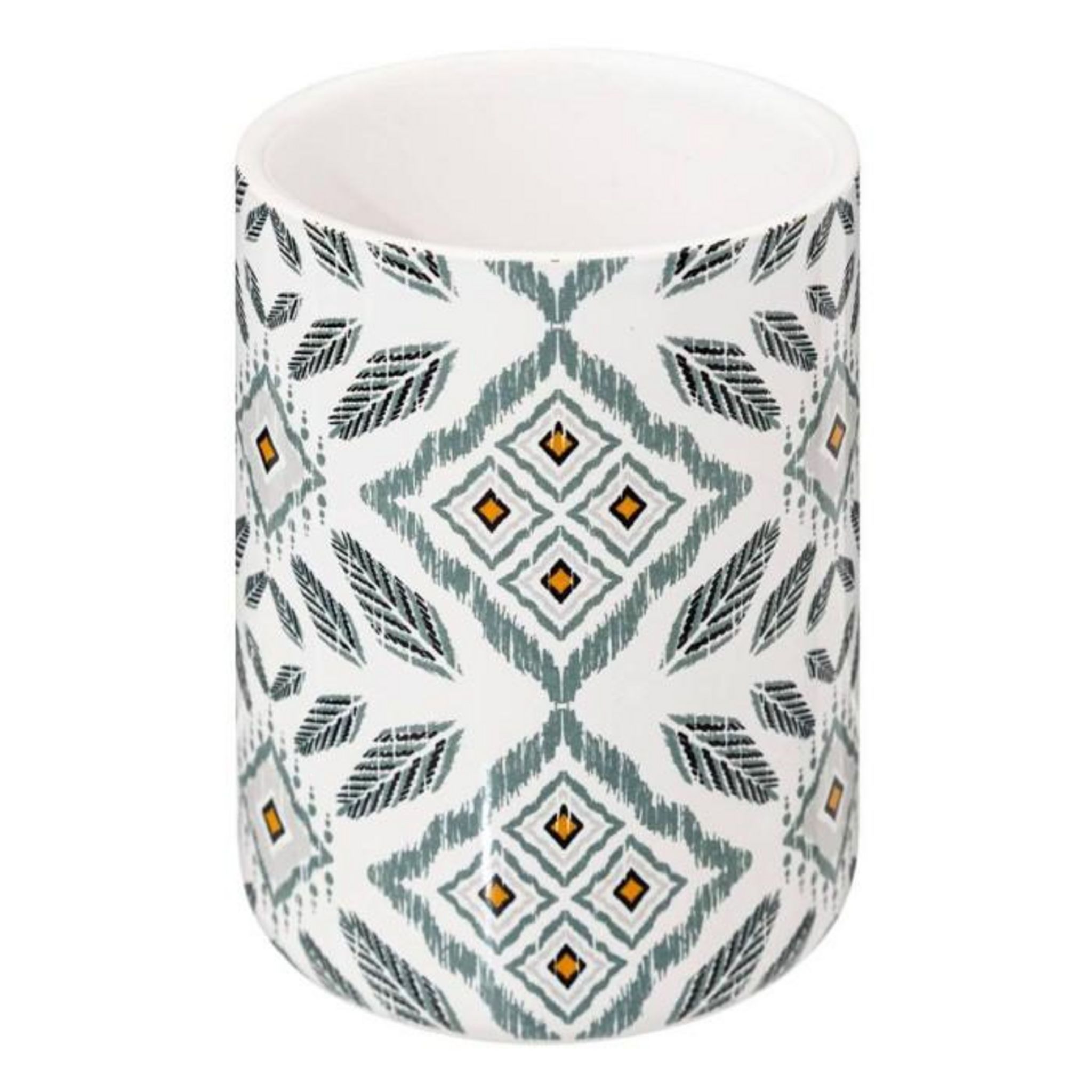 Informations Techniques : Dimensions : D. 7,6 x H. 10,2 cm Matière : Dolomite Spécificités : Déco & Utile Gobelet brosse à dents rond Imprimé ethnique Poids : 0,25 kg Couleur : Multicolore